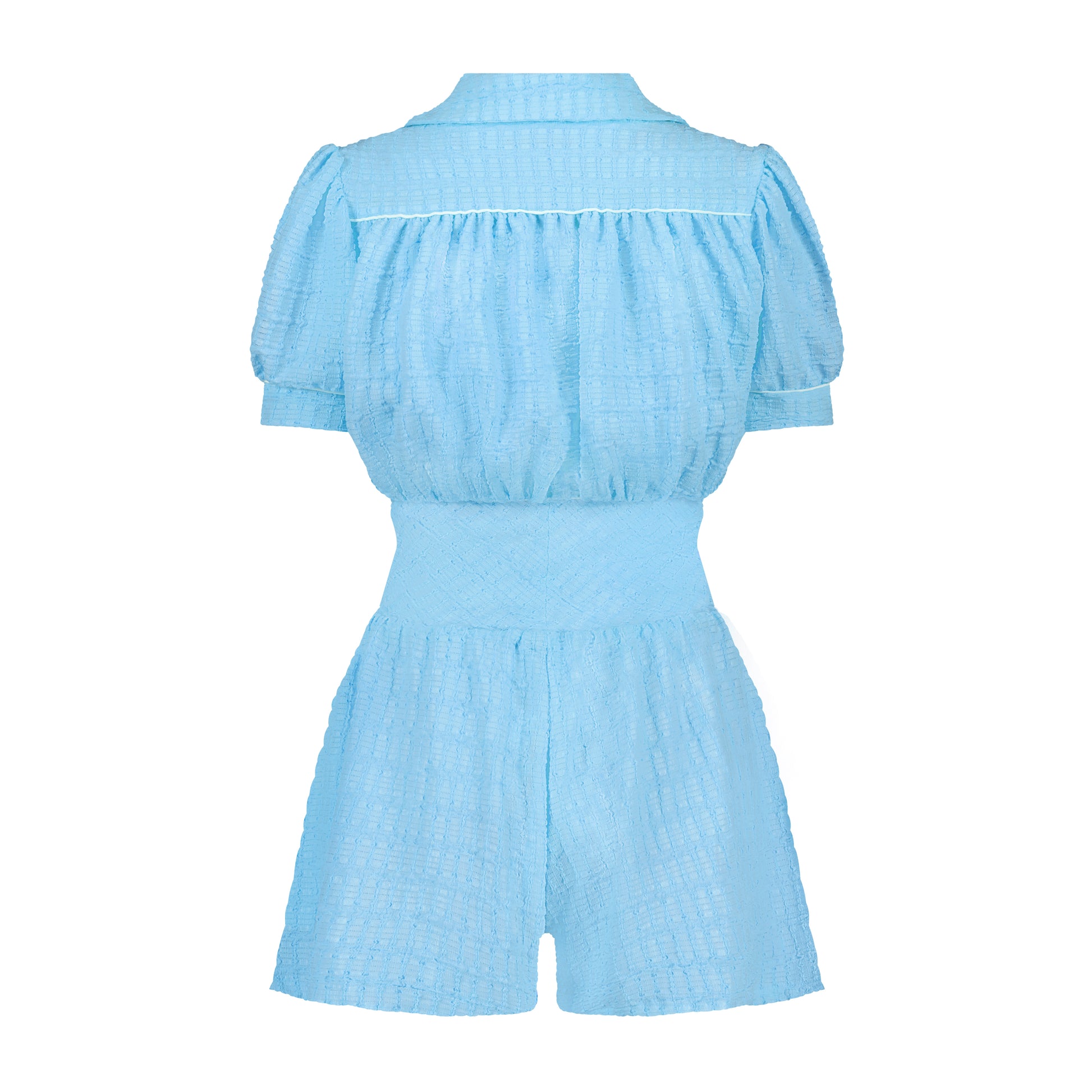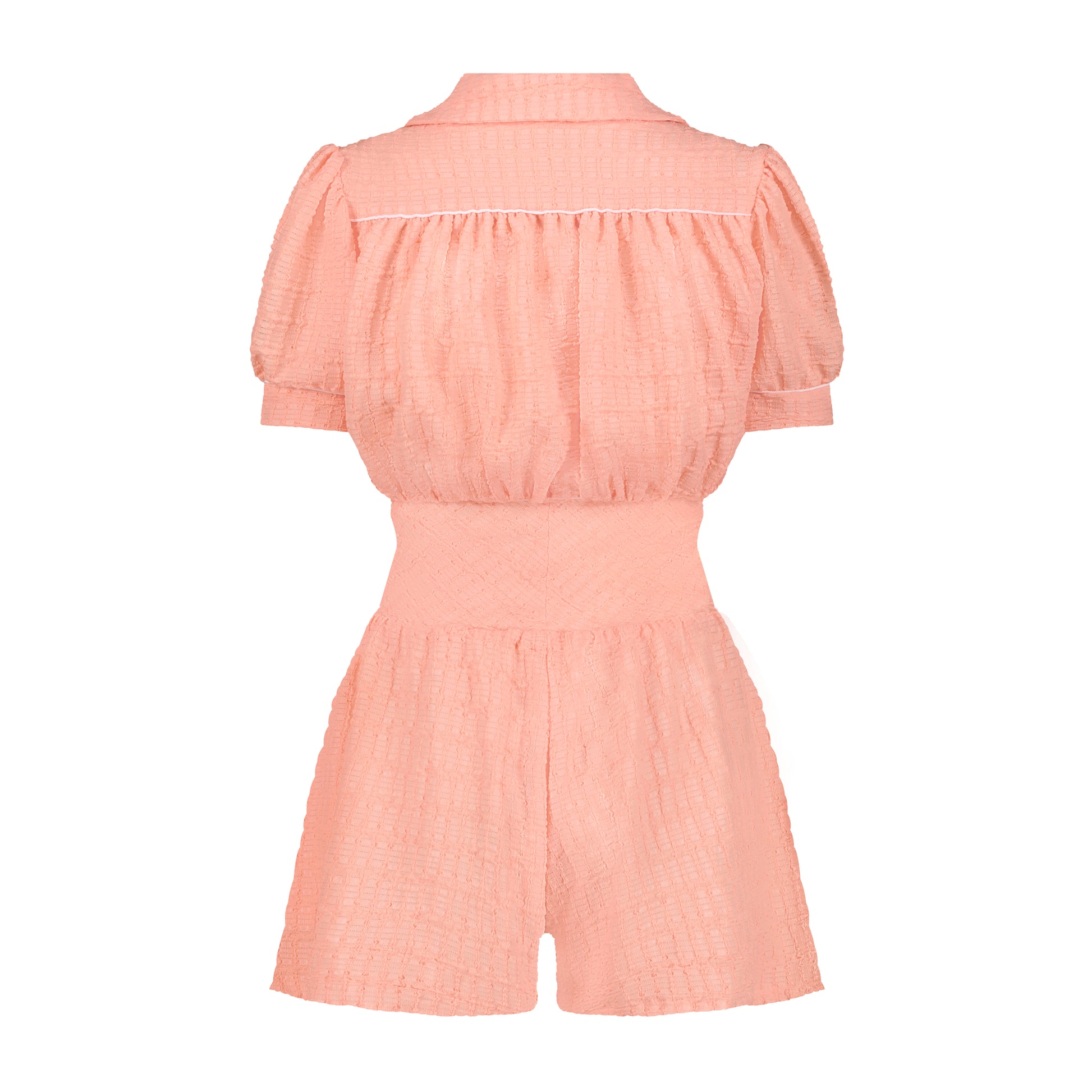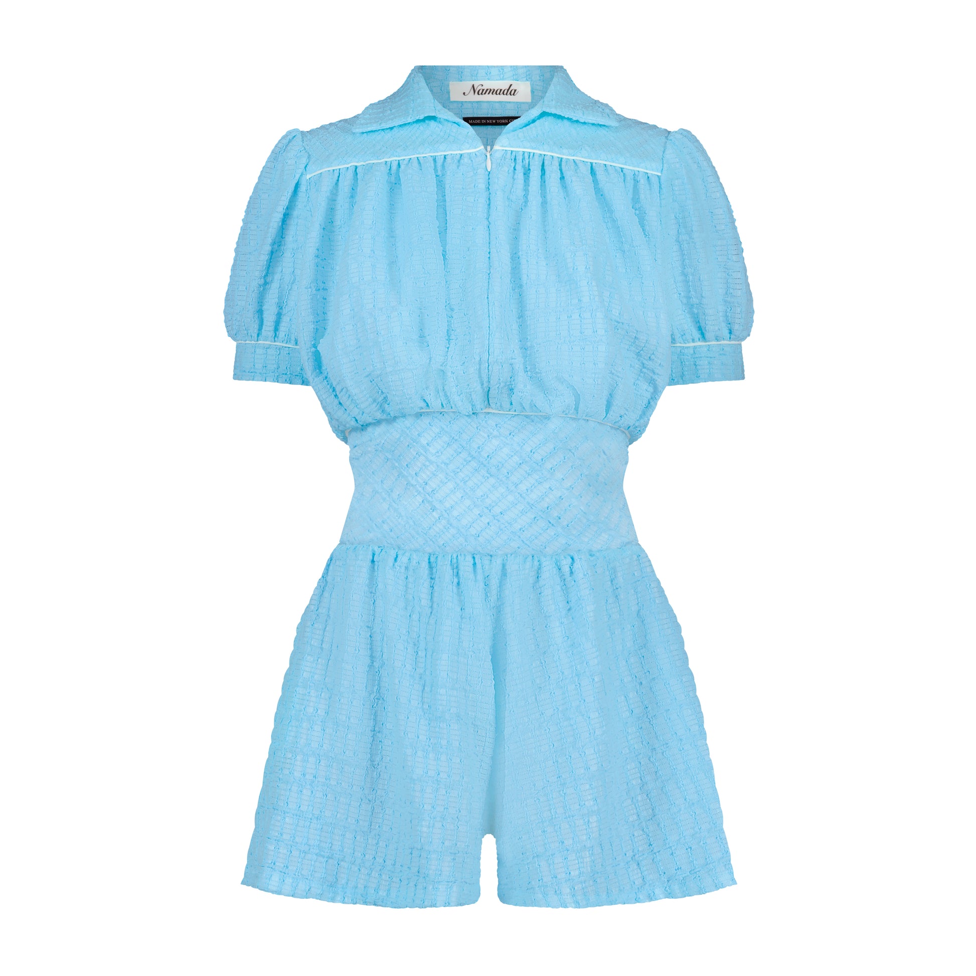 The Playsuit is created from two fabrics, layered together for depth and performance. It has the same fit as the dress- with one difference- shorts. There are pockets in the shorts and a front zip.